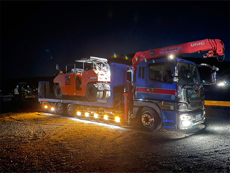 福岡、九州一円を中心に、重機運搬のプロが安全・迅速に重機・建設機械を目的地まで運搬します。
